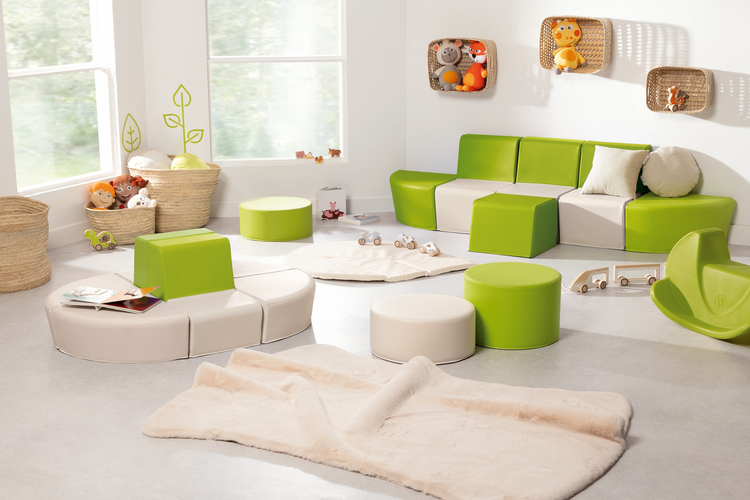 Kombinace pěny a plátna nebo koženky je uklidňující a zabraňuje jakémukoli zranění při kontaktu. Ideální pro čtení a relaxaci. Pěnový nábytek v několika velikostech pro děti až po dospělé (výška sezení 40 cm). Měkký nábytek pochází od designéru Wesco.