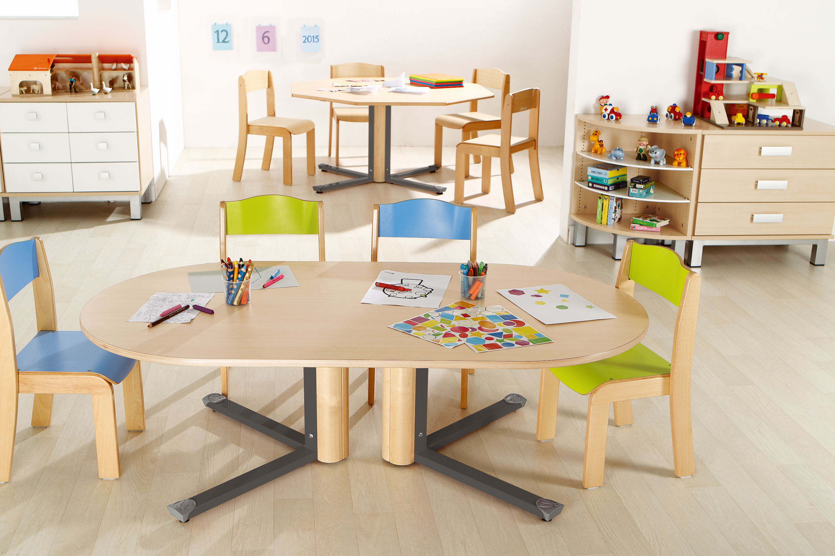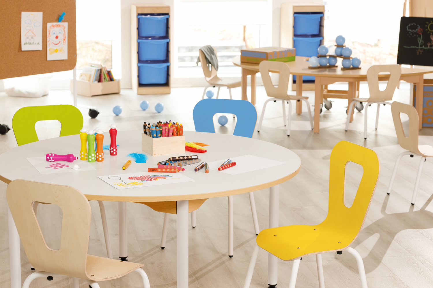 A na základě výšky a zvoleného stolu vám pro danou věkovou kategorii rádi pomůžeme vybrat i vhodné židle. Židle by se měly snadno udržovat, být snadno omyvatelné a odolné.