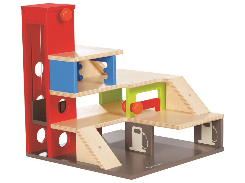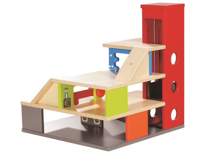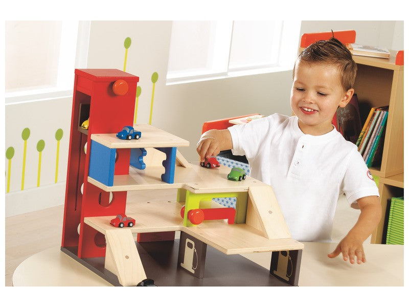 Děti díky výtahu objevují různé aktivity, které dopravují vozidla do různých pater, umývají je, aby svítily, nebo dokonce čerpají benzín. Bezpečnostní bariéra reguluje dopravu, aby se zabránilo nehodám. Velká hrací plocha nabízí mnoho herních možností a snadný přístup pro nejmenší.