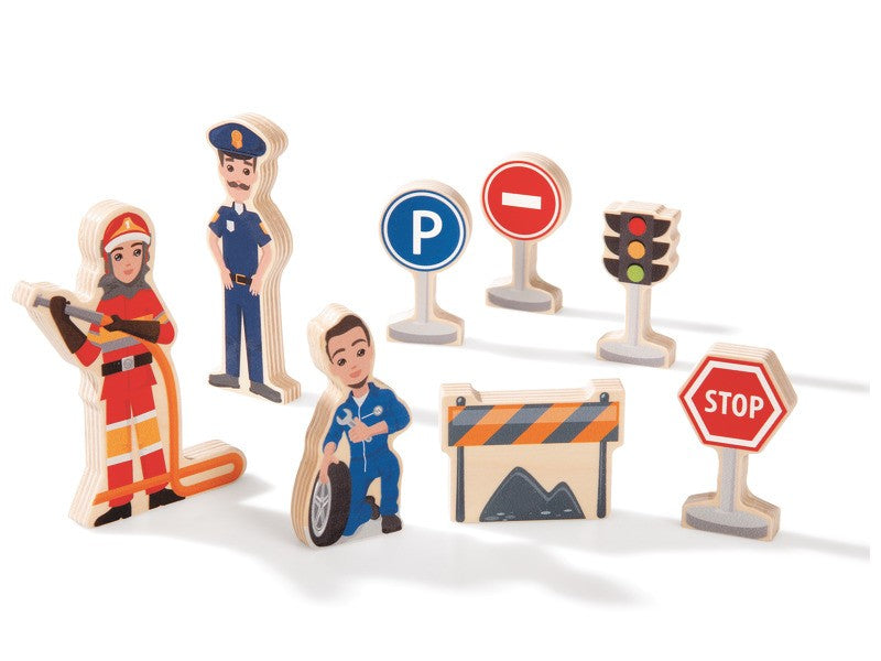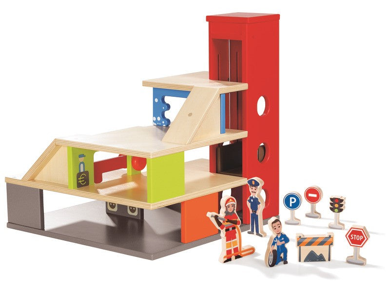 Kompaktní garáž + 8 figurek ze dřeva