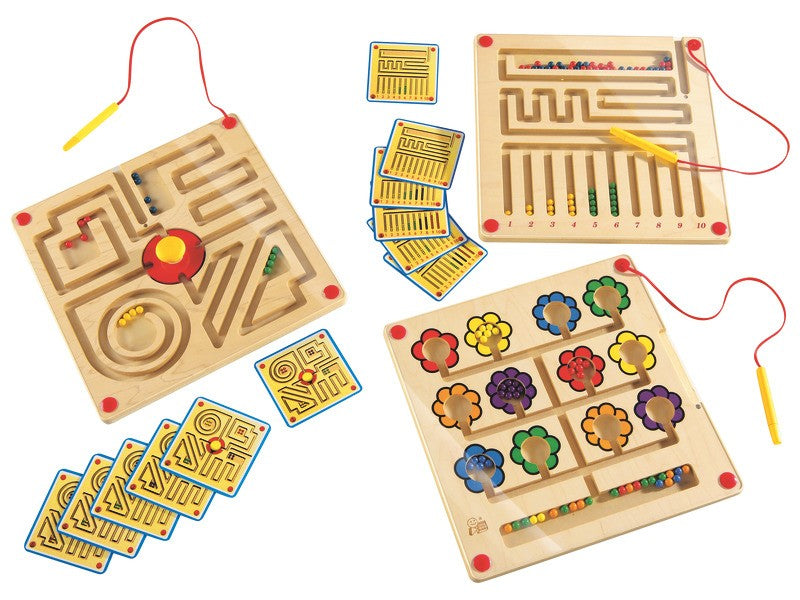 Složení: Magnetický labyrint tvarů, Magnetický labyrint barev, Magnetický labyrint čísel.