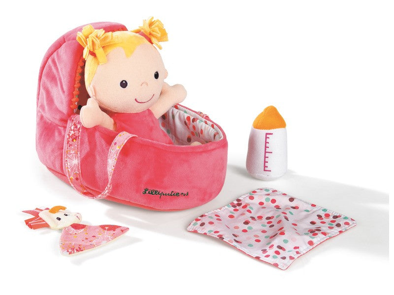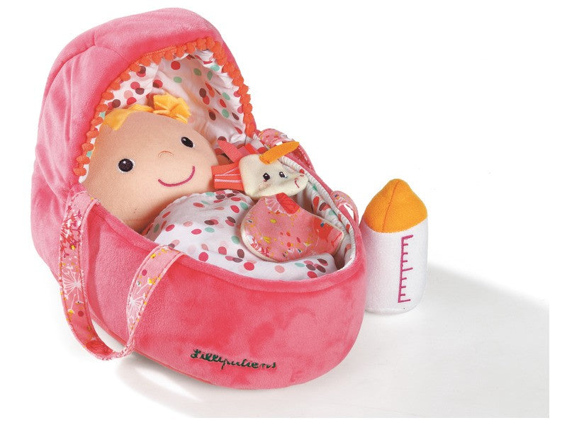 Ideální panenka od 9 měsíců pro první přístup k imitaci hry. Stimuluje představivost a manipulaci (šaty a plenky lze snadno vyjmout malými rukama). Dodáváno s brašnou a odpovídající přikrývkou, magnetickou dětskou lahví a malým přikrývkou.