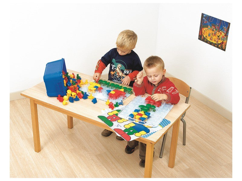 Obsahuje 240 kloboučků s různými tvary (kulatý, čtvercový, trojúhelníkový a čtvrtkruhový).