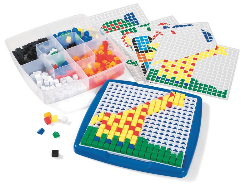 Složení 1 krabice s přihrádkami, 1 mřížka, 490 dílků a 6 oboustranných listů aktivit.