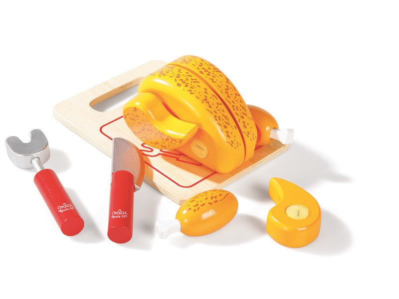 Složení: 1 kuře, 1 nůž, 1 rožna a 1 prkénko.