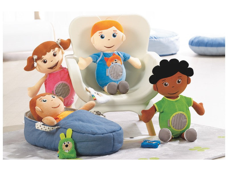 plyšová miminka, s velmi jemným a nadýchaným sametovým nádechem, schovávají v kapse přikrývku s opačnou náladou. S těmito plyšovými dětmi vytvoří dítě emocionální pouto a prostřednictvím imitace bude moci svobodněji vyjádřit své emoce.