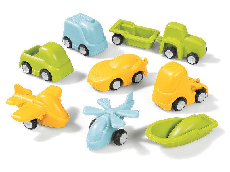 Složení: 1 člun, 1 auto, 1 letadlo, 1 vrtulník, 1 tahač, 1 dodávka, 1 pick-up, 1 nákladní automobil a 1 přívěs.