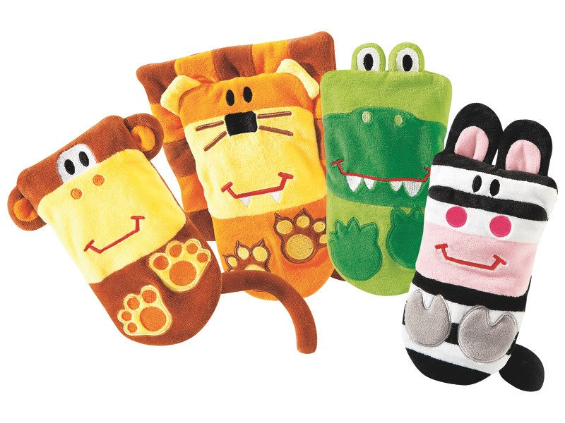 Složení: 4 loutky : 1 opice, 1 lev, 1 zebra, 1 krokodýl.