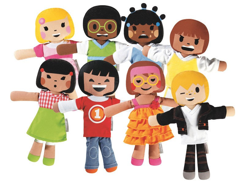 Tato řada malých vzdělávacích panenek ÉMOTeam, které se s nimi snadno manipulují, vyjadřuje 8 různých emocí. Napodobováním každodenních scén budou děti pozorovat, identifikovat a popisovat své pocity.