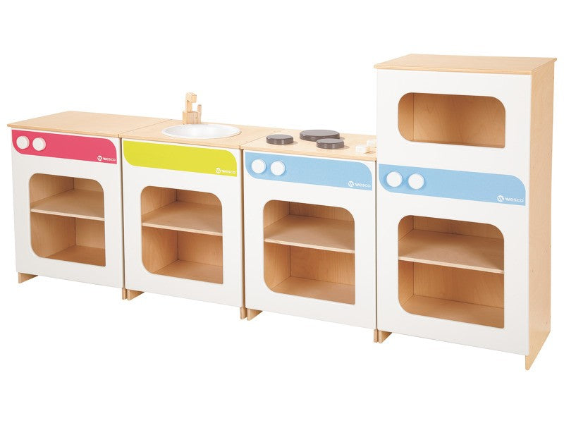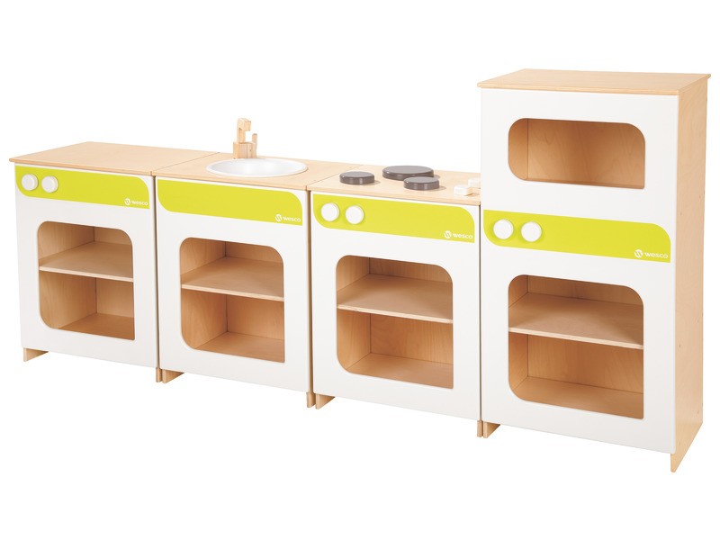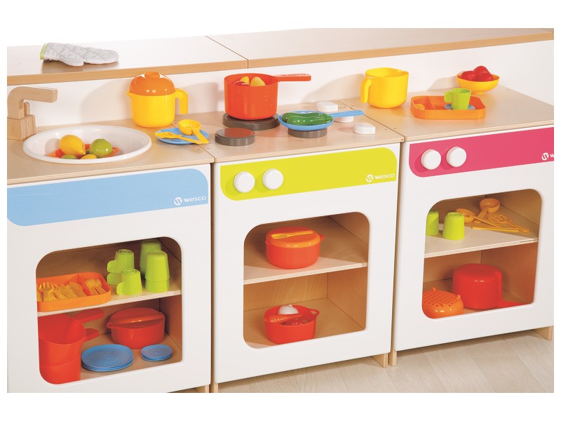 Děti budou mít spoustu zábavy s touto sadou, která zahrnuje sporák, umyvadlo, myčku a lednici. Reprodukcí každodenních gest získávají slovní zásobu a získávají samostatnost.