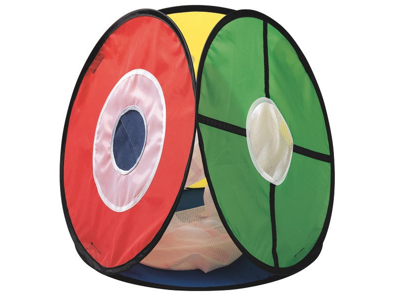 Tento čtyřstranný cíl je škálovatelný a je zaměřen na začátečníky i ty nejzkušenější. Pro golfové experty je ideální pro trénink na různých jamkách. Ultra lehký terč je dodáván ve smontovaném stavu a velmi snadno se ohýbá a odvíjí.