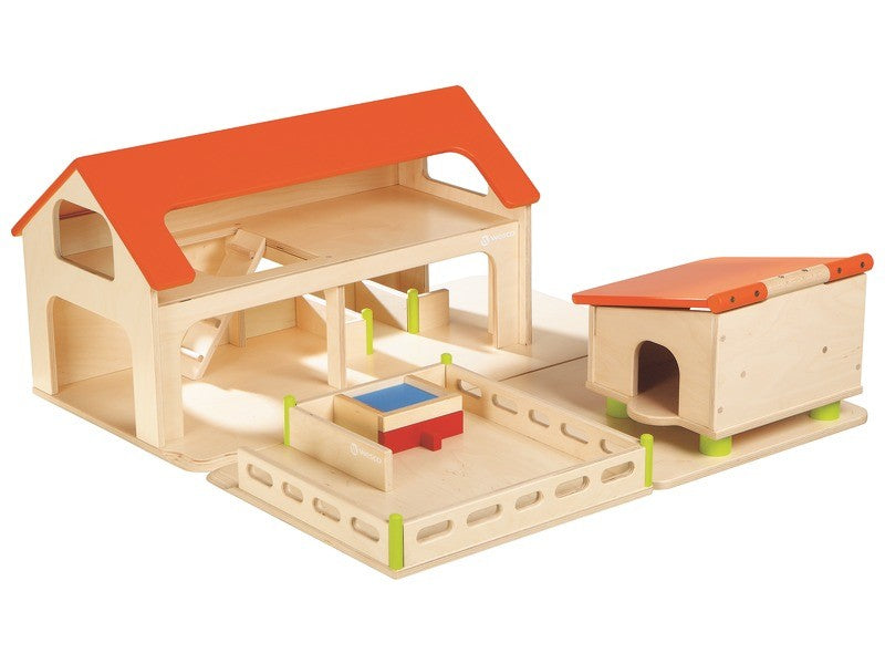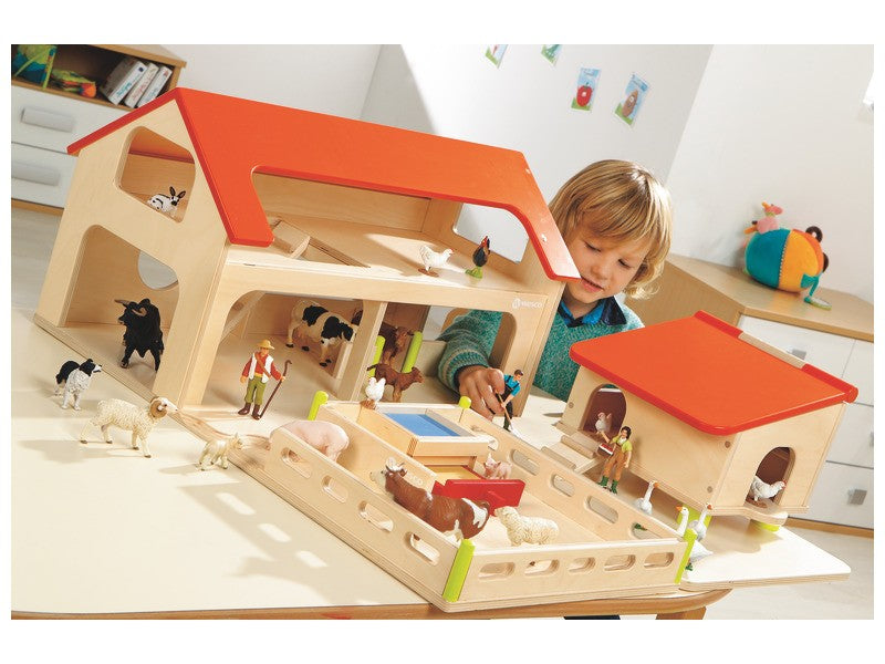 Obsahuje: 1 farma, 1 ohrada a 1 kurník. D: 77 cm - Š: 77 cm - v: 36.5 cm. Vyrobeno z lakované PŘEKLIŽKY Dodáváme smontované, bez doplňků.